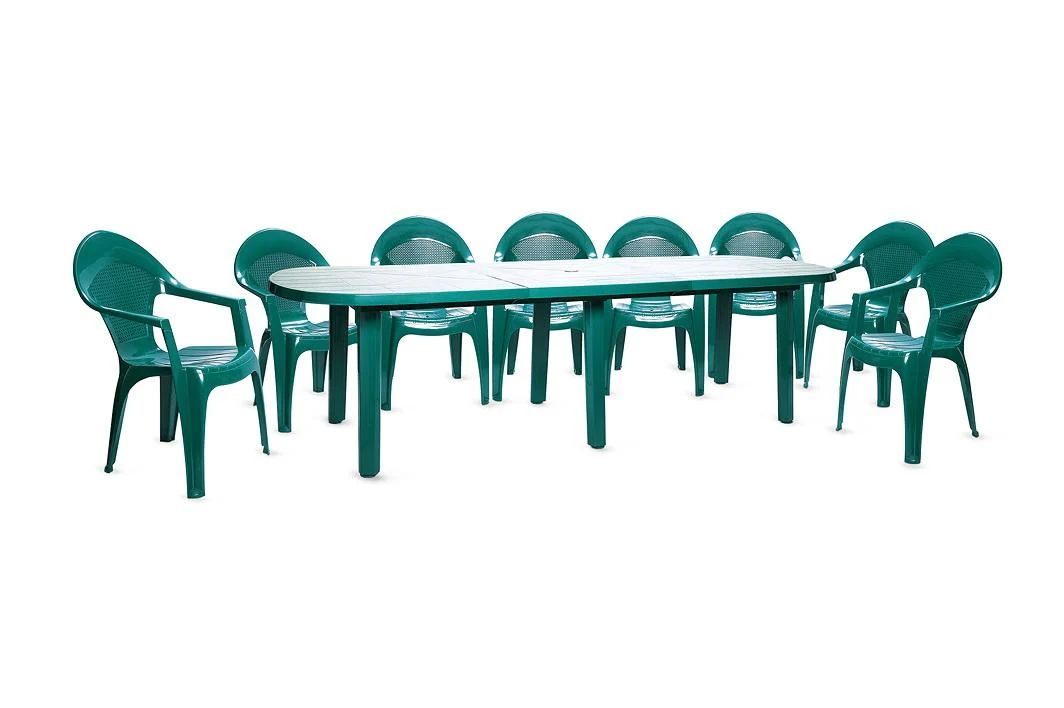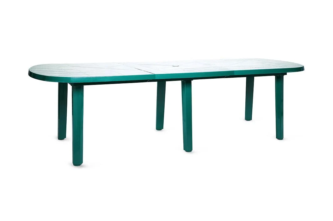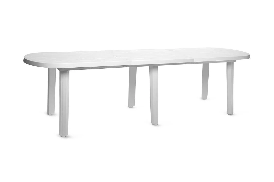 Размеры 2500 х 900 мм, с двумя вставками 3200 х 900 мм Высота 710 мм Вес 16.23 Овальный пластиковый стол со вставкой очень практичен, легко и быстро собирается и разбирается, в разобранном виде он занимает очень мало места. Кроме того, Вы всегда можете увеличить его длину, добавив дополнительную вставку.